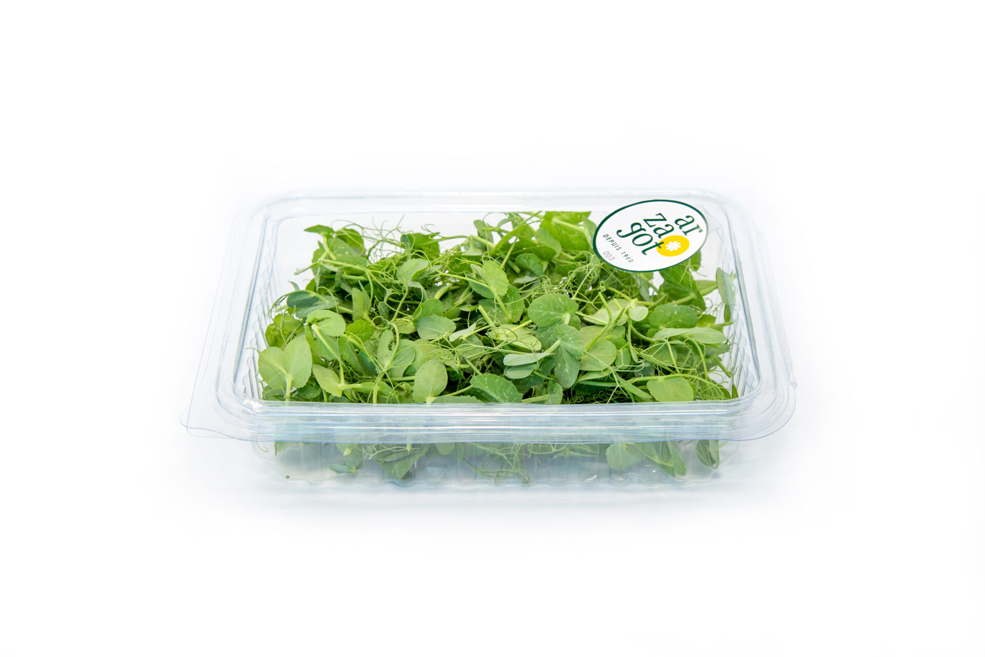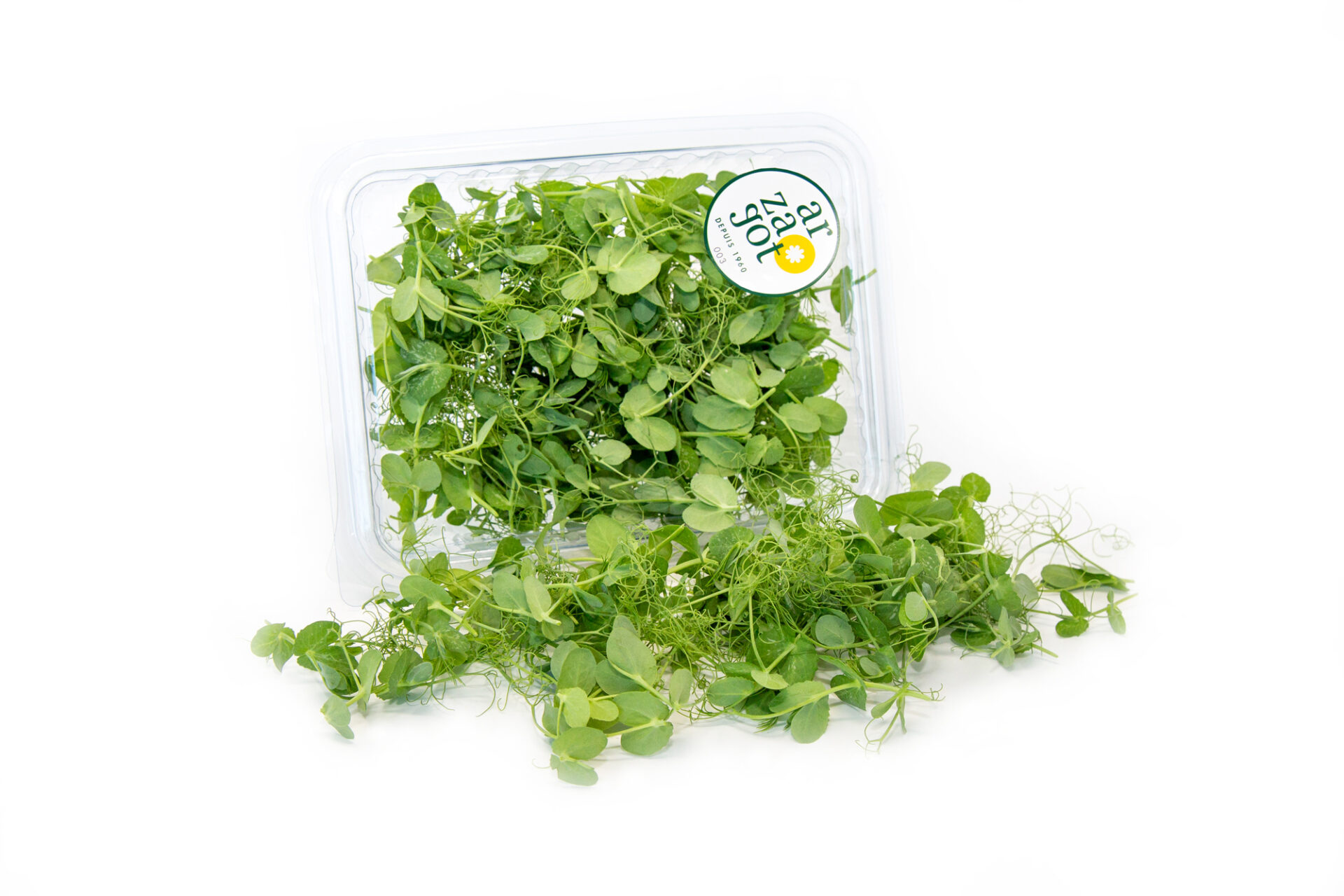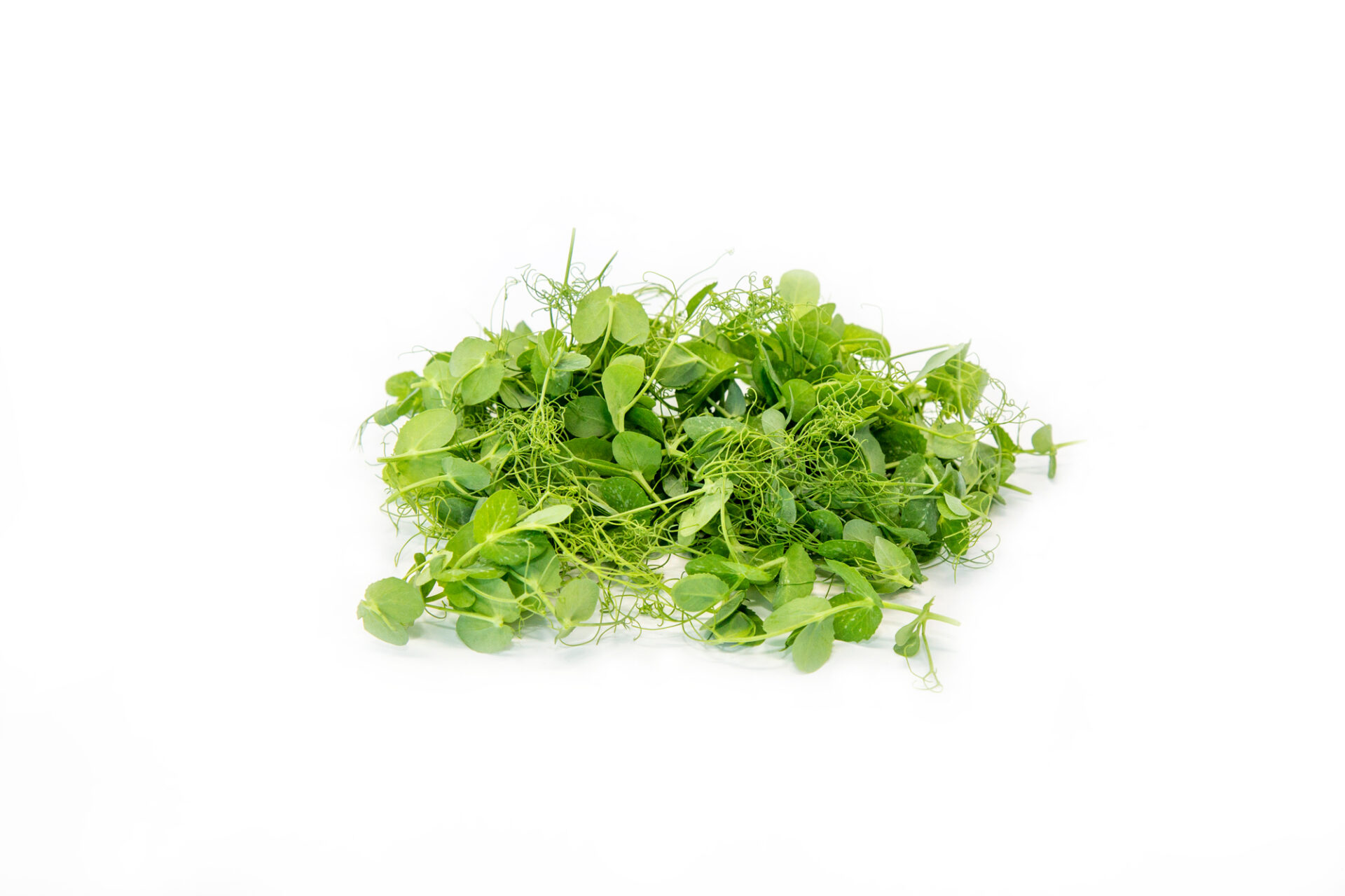 De fines tiges souples et charnues terminées par de délicates vrilles bouclées, offrant une texture croquante et juteuse avec une saveur douce et fraîche qui concentre toute l’essence du petit pois de printemps.